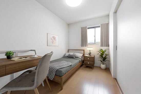 一人当たりの部屋はコンパクトでもOKということでしたら、間に引き戸を設けて2室に分けられるようにしてはいかがでしょう。2室の間に間仕切り家具を設けるケース、間仕切りドアを収めるケース、引戸で2室を分けるケースなどがあります。将来的に子供が独立した後、間仕切りを取り外して広い部屋として利用することも考えてみましょう。