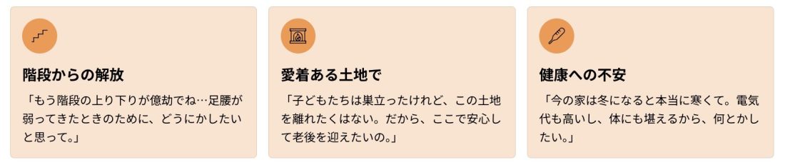 「今の家は冬になると本当に寒くて。電気代も高いし、体にも堪えるから、何とかしたい。」