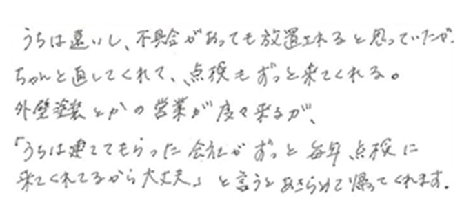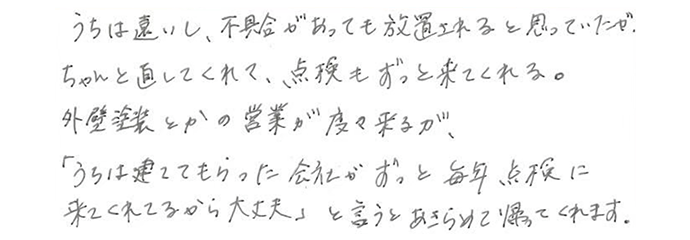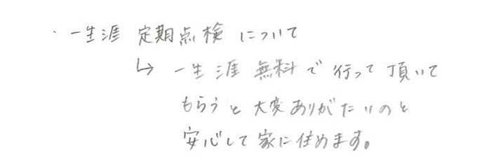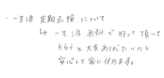 家を建てる前に描いた快適な暮らしを、お客様にずっとお届けできるように点検の永年無償点検をさせていただいています。