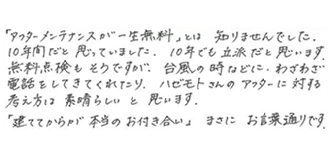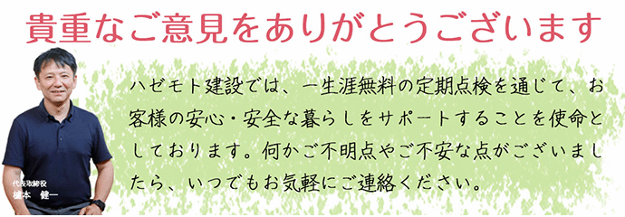 それが、家をつくって売っただけでは終わらない、お客様との関係を大切にしているハゼモトのこだわりです。