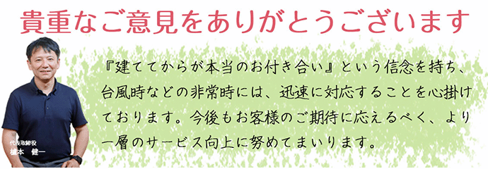 「建ててからが本当のお付き合い」という考えのもと、私たちは24時間365日即日対応をしています。