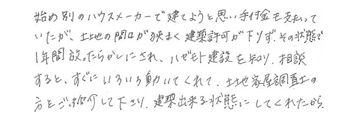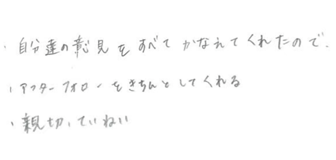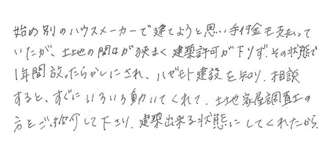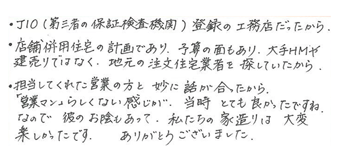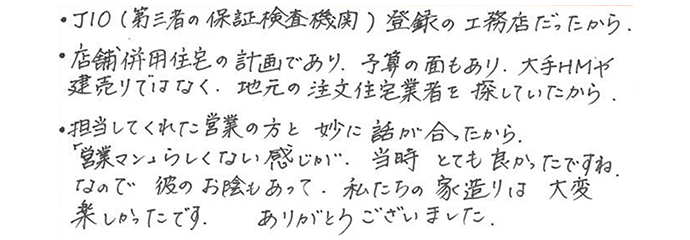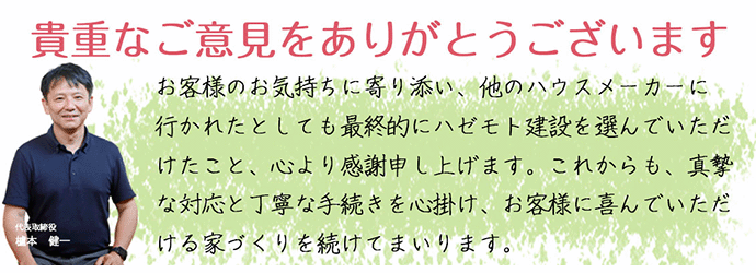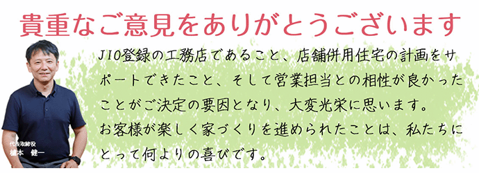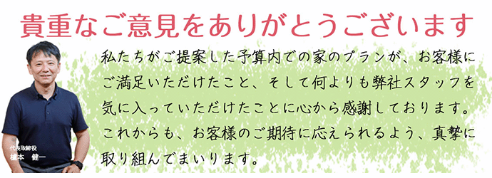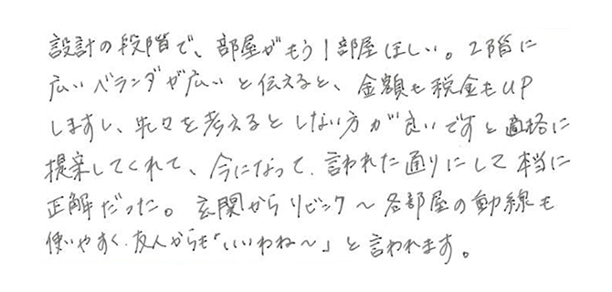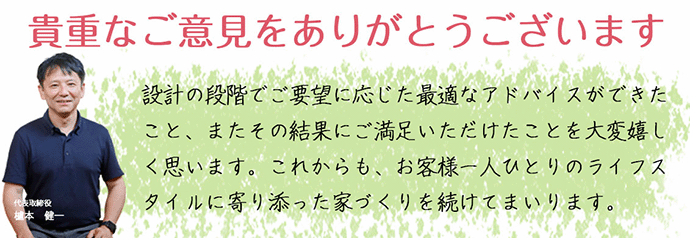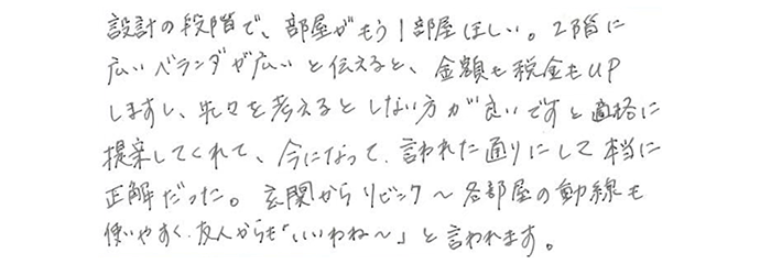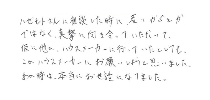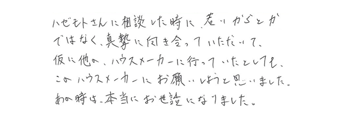 💬 「家づくりの打ち合わせから完成まで、いつも丁寧に対応していただけました」