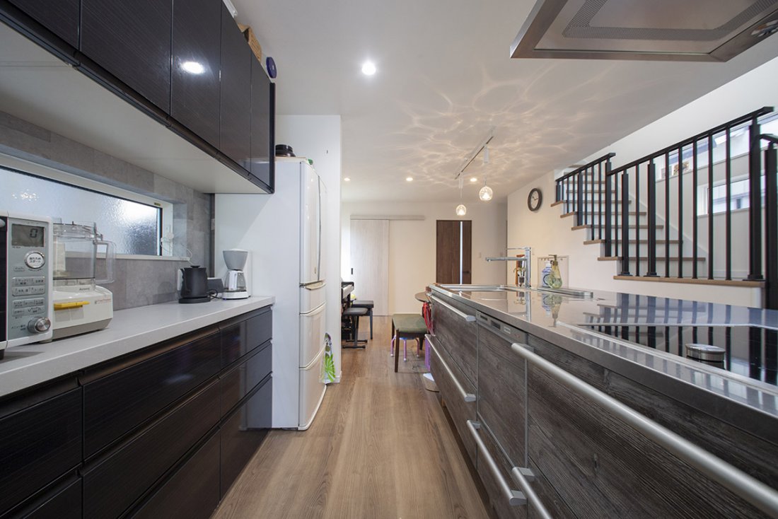 壁で仕切られていないオープンキッチンは、のびのびした気分で調理を行えます。