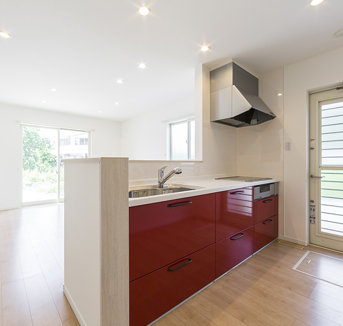 オープンな空間を作り出し、家族とのコミュニケーションを促進しながら、効率的な動線を実現しています。