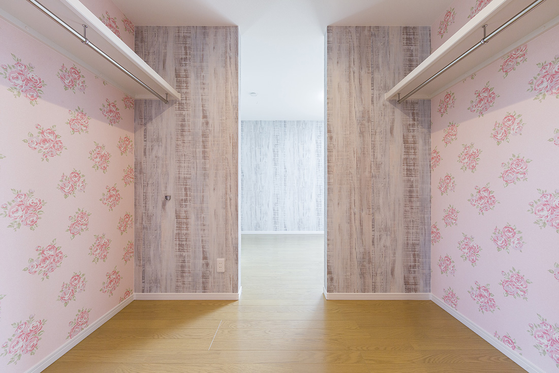 ウォークインクローゼットには、ちょっと気分が上がるクロスを選びました。