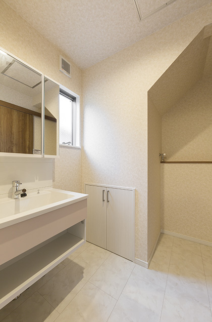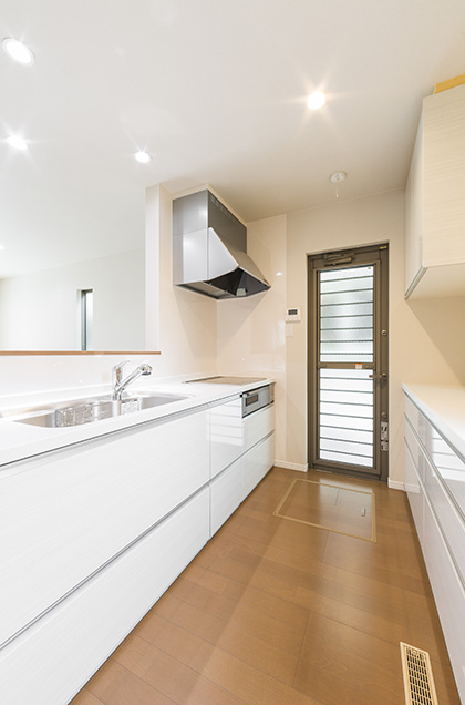 いつも家族の温かみを感じたい、家族とのコミュニケーションを大切にして、いつまでも仲良く暮らしていきたいご家族におすすめの間取りです。キッチンには鮮やかな黄色のクロスを採用し、ご家族の明るさが伺える住まいとなりました。