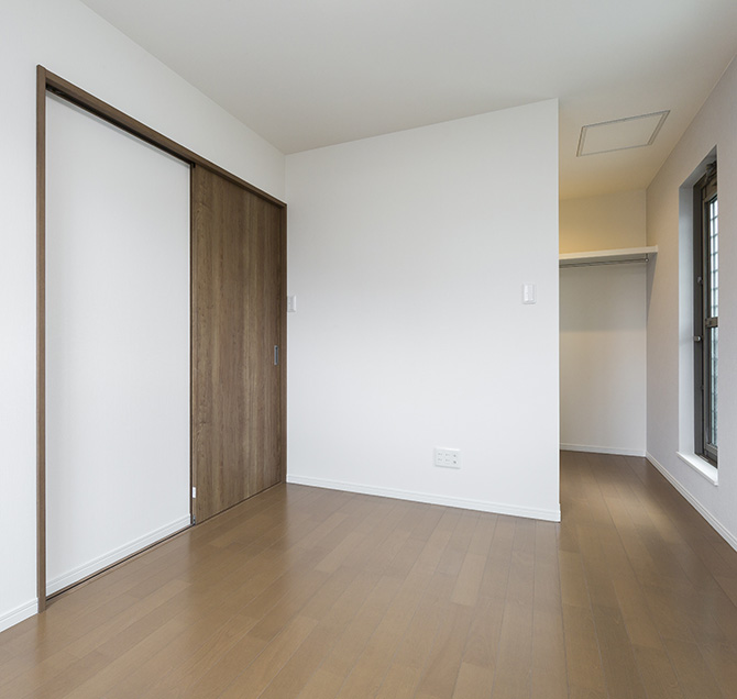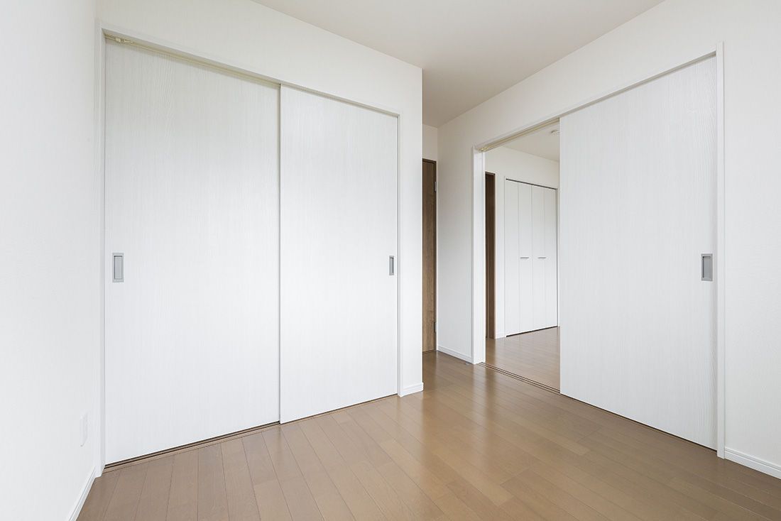 一人当たりの部屋はコンパクトでもOKということでしたら、間に引き戸を設けて2室に分けられるようにしてはいかがでしょう。2室の間に間仕切り家具を設けるケース、間仕切りドアを収めるケース、引戸で2室を分けるケースなどがあります。将来的に子供が独立した後、間仕切りを取り外して広い部屋として利用することも考えてみましょう。