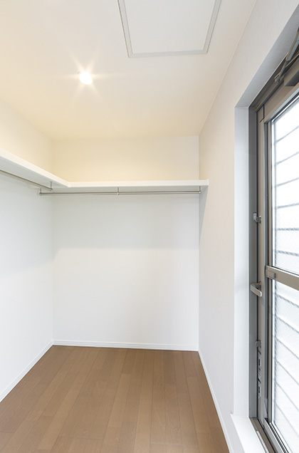 寝室のウォークインクローゼットは、朝起きたらすぐに着替えられるのがとても便利ですし、タンスとは違って部屋の中に見えないように収納できるのが魅力的です。衣類を一箇所にまとめることで、収納面だけでなく、洋服を選ぶ際にも便利だと感じている方が多いですね。
