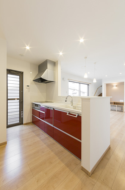 ビビッドカラーがポイント収納たっぷりのキッチン