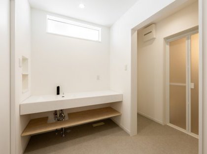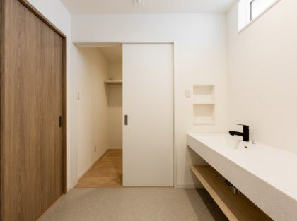 キッチンは開放感のあるレイアウトで家族の会話が自然に生まれ、洗面台やトイレもすっきりとしたデザインで、まるでホテルのような上質な空間に。お客様をお迎えする際にも、自信を持ってご案内できる“見せたくなる”場所になりました。