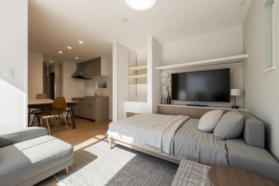 アパートの一室のように生活動線が集約されていながら、戸建てなので周囲のお部屋に気兼ねすることなくゆったりと過ごせます。