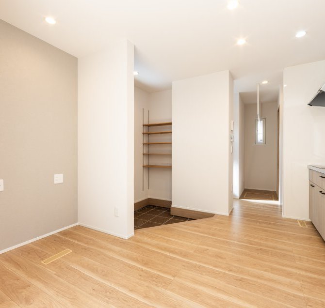 無駄なスペースを一切省き、広さを感じられる壁が少ない設計を徹底しながら、収納力を上げています。