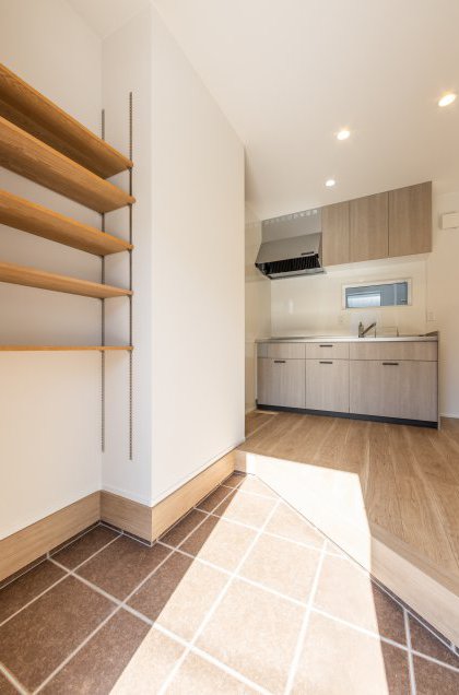玄関の上がり框(かまち)は、あえて斜めに。