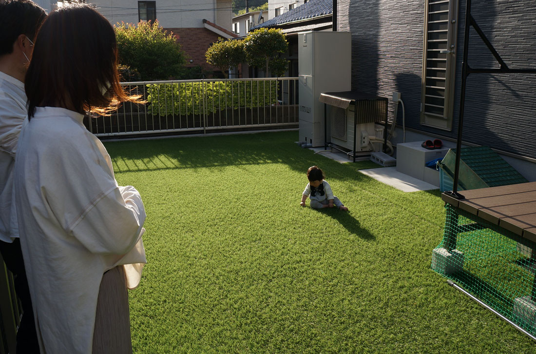 「床下エアコンにとても満足しています。」家中が均一な暖かさなので、冬でも行動範囲が制限されない点も、忙しい子育て家族には大きなメリットです。