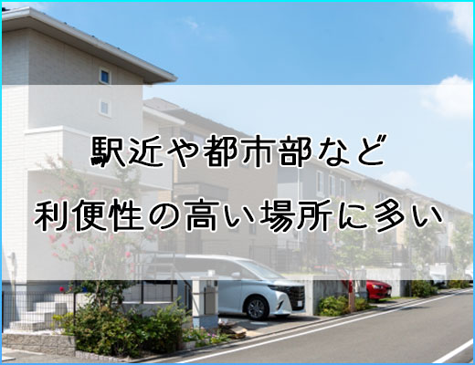 狭小地は首都圏や都市部、さらに駅近など、人気のある立地に多いという特徴があります。生活圏は便利なところが良い、というニーズの高さがうかがえます。