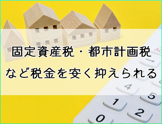 税額を計算する時には、固定資産税評価額が基準になりますが、固定資産税評価額の算出には土地や家屋の面積も加味されています。そのため、狭小地・狭小住宅では税金が安く抑えられます。