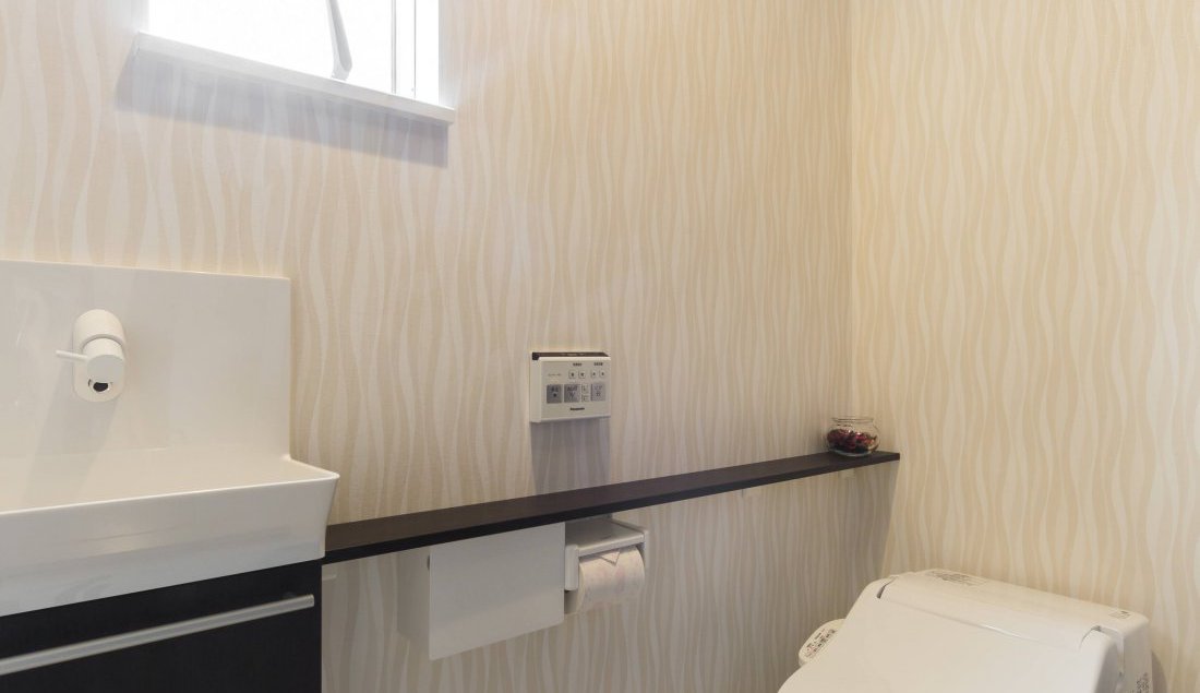 居場所を決めて、見えにくい・掃除しやすい収納の下部を掘り下げて、抗菌パネルを貼ればトイレの掃除も簡単です。 -