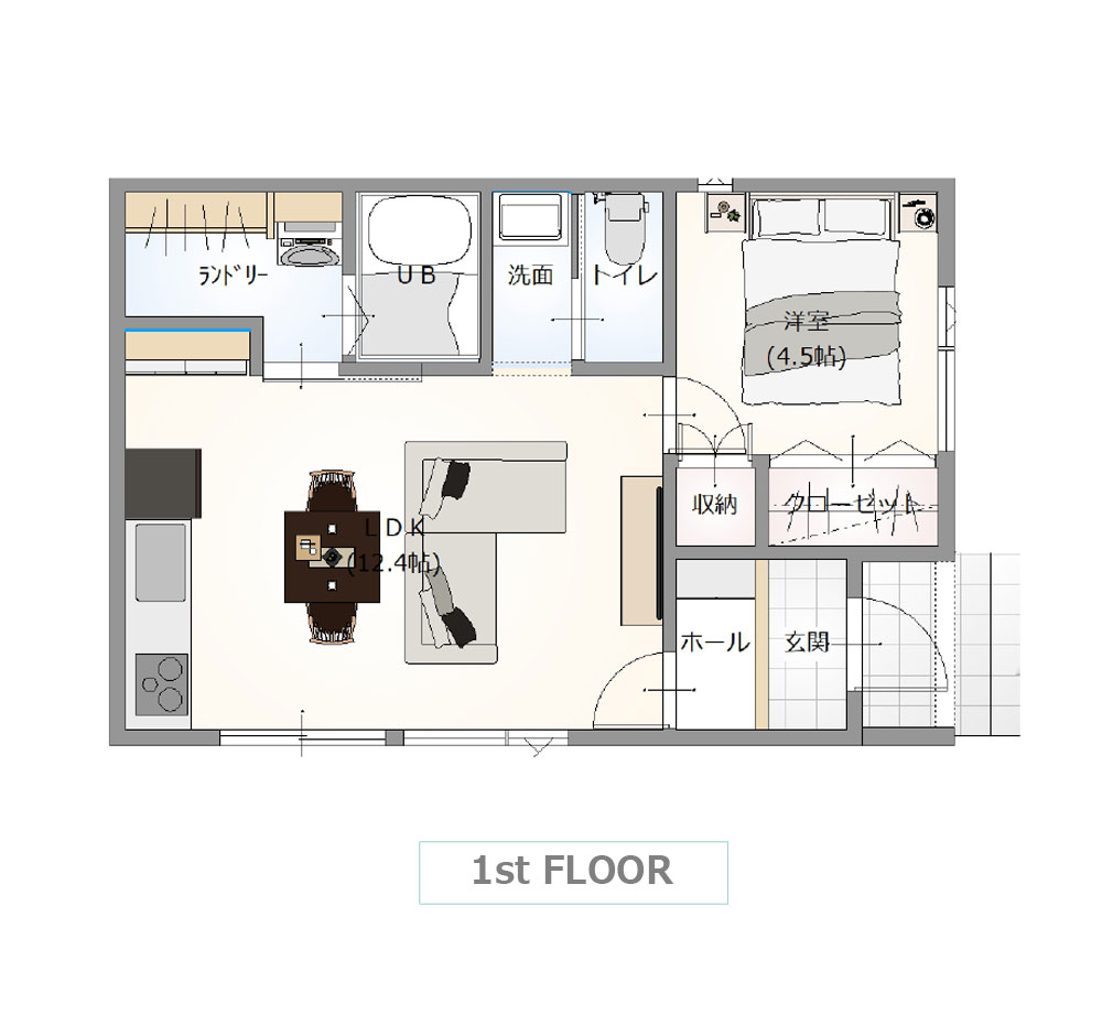 10坪プランより一回り広く、居住性を重視したコンパクト平屋です。